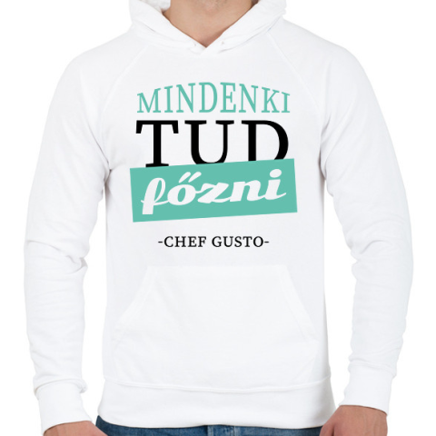 1 kép PRINTFASHION Mindenki tud főzni - idézet - Férfi kapucnis pulóver - Fehér