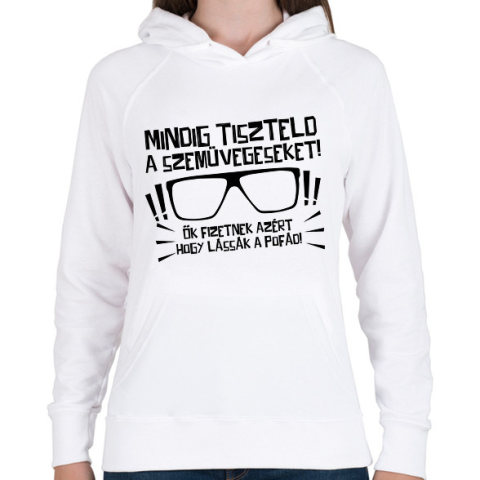 1 kép PRINTFASHION Mindig tiszteld a szemüvegeseket - fekete - Női kapucnis pulóver - Fehér