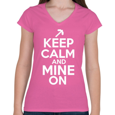 1 kép PRINTFASHION Minecraft - Csak nyugi és bányássz! - Női V-nyakú póló - Rózsaszín