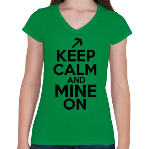 1 kép PRINTFASHION Minecraft - Csak nyugi és bányássz! - Női V-nyakú póló - Zöld