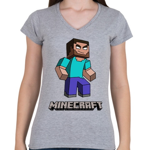1 kép PRINTFASHION Minecraft - Herobrine - Női V-nyakú póló - Sport szürke