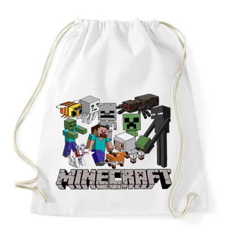 1 kép PRINTFASHION Minecraft karakterek - Sportzsák, Tornazsák - Fehér