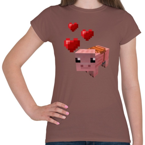 1 kép PRINTFASHION Minecraft pig love - Női póló - Mogyoróbarna
