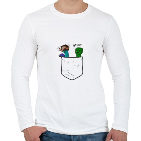 1 kép PRINTFASHION Minecraft Pocket - Férfi hosszú ujjú póló - Fehér