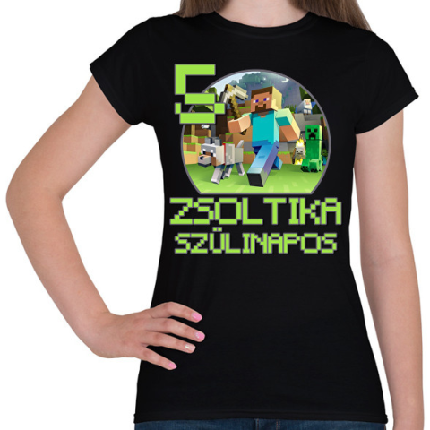 1 kép PRINTFASHION Minecraft születésnap - Egyedi névvel - Női póló - Fekete