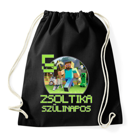 1 kép PRINTFASHION Minecraft születésnap - Egyedi névvel - Sportzsák, Tornazsák - Fekete