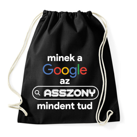 1 kép PRINTFASHION Minek a google az asszony mindent tud - Sportzsák, Tornazsák - Fekete