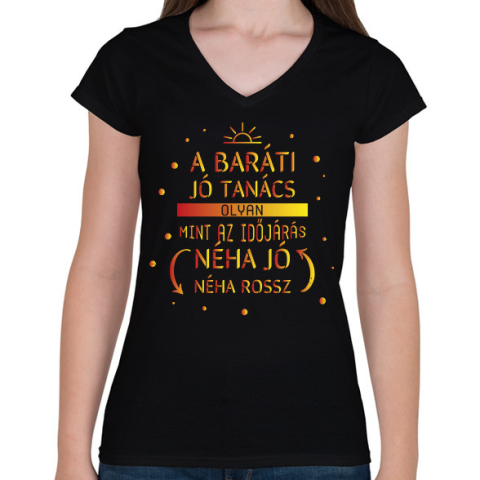 1 kép PRINTFASHION Mint az időjárás - Női V-nyakú póló - Fekete