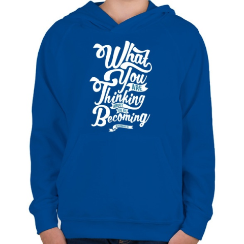 1 kép PRINTFASHION Mire gondolsz ? - Gyerek kapucnis pulóver - Királykék