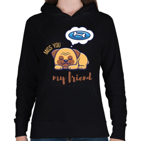 1 kép PRINTFASHION Miss you my friend - Kutyás - Női kapucnis pulóver - Fekete
