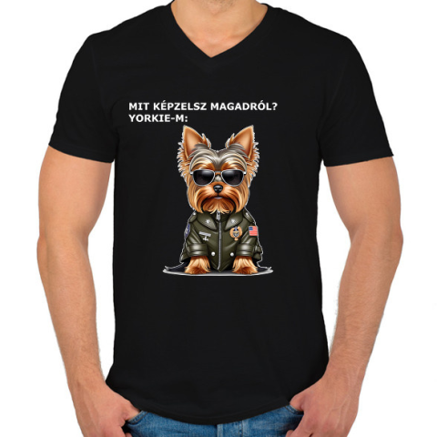 1 kép PRINTFASHION MIT KÉPZELSZ MAGARÓL - YORKIE - Férfi V-nyakú póló - Fekete