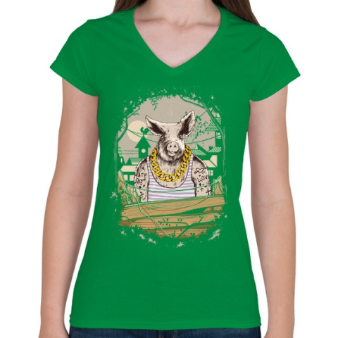 1 kép PRINTFASHION Mocskos disznó - Női V-nyakú póló - Zöld