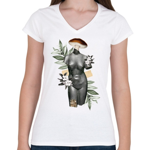 1 kép PRINTFASHION Modern szobor - Női V-nyakú póló - Fehér