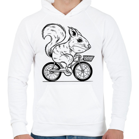 1 kép PRINTFASHION Mókus biciklin - Férfi kapucnis pulóver - Fehér