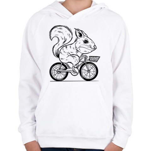 1 kép PRINTFASHION Mókus biciklin - Gyerek kapucnis pulóver - Fehér