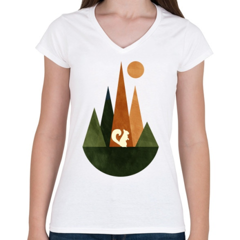 1 kép PRINTFASHION Mókus és hegyek 2 - Női V-nyakú póló - Fehér