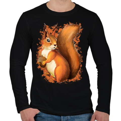 1 kép PRINTFASHION Mókus - Férfi hosszú ujjú póló - Fekete