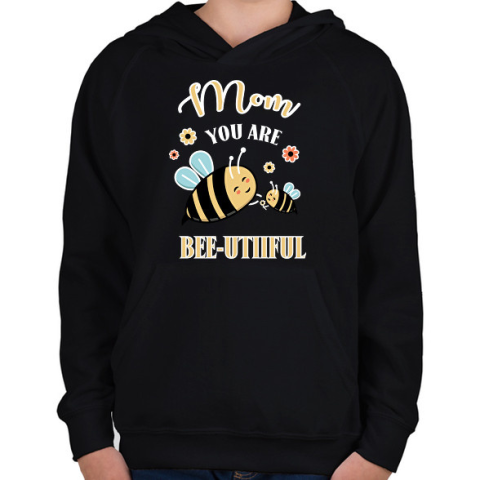 1 kép PRINTFASHION Mom you are bee-utiful! - Gyerek kapucnis pulóver - Fekete