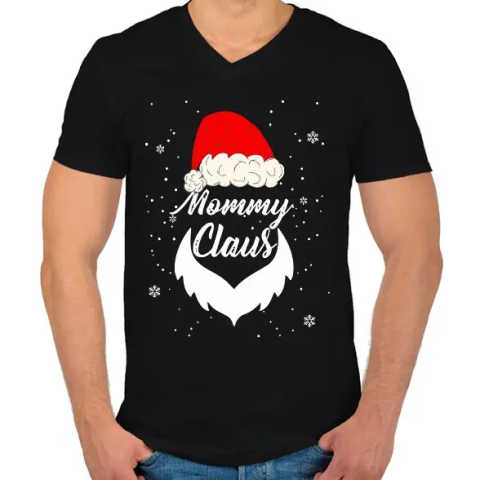 1 kép PRINTFASHION Mommy claus - Férfi V-nyakú póló - Fekete