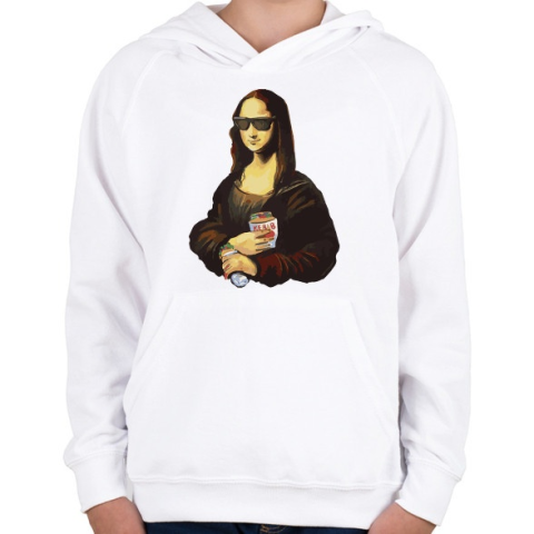 1 kép PRINTFASHION Mona lisa kebebbal - Gyerek kapucnis pulóver - Fehér