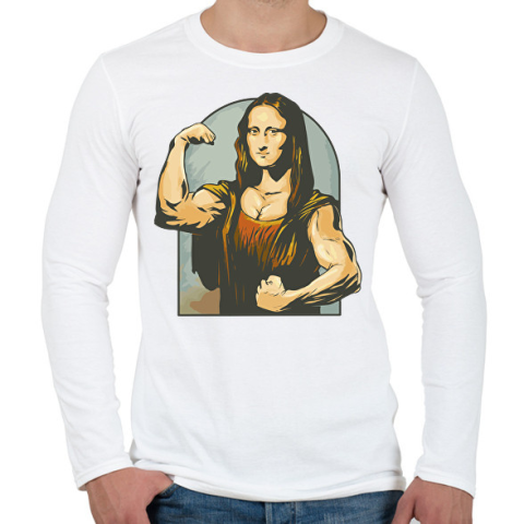 1 kép PRINTFASHION Mona Lisa kigyúrva - Férfi hosszú ujjú póló - Fehér