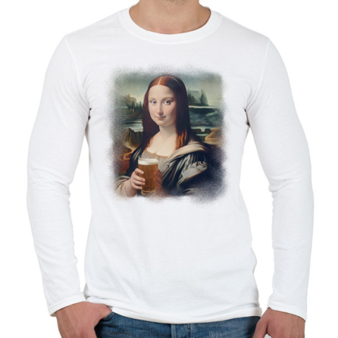 1 kép PRINTFASHION Mona Lisa sörrel - Férfi hosszú ujjú póló - Fehér