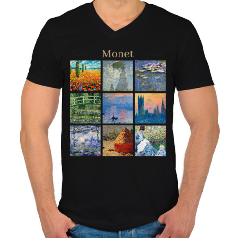 1 kép PRINTFASHION Monet - részletek - Férfi V-nyakú póló - Fekete