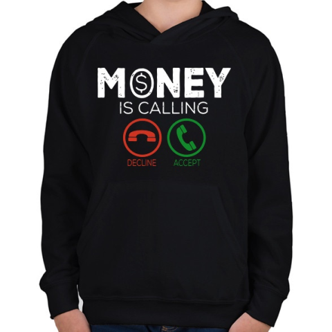 1 kép PRINTFASHION Money is callin - Gyerek kapucnis pulóver - Fekete