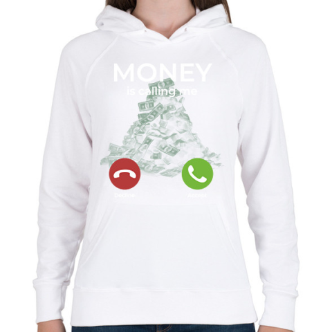 1 kép PRINTFASHION Money is calling - Női kapucnis pulóver - Fehér