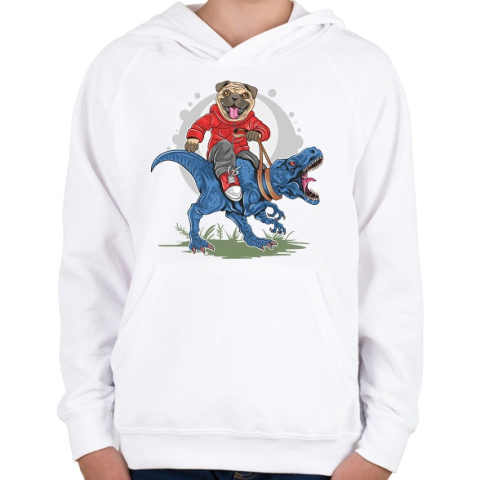1 kép PRINTFASHION Mopsz és a T-rex - Gyerek kapucnis pulóver - Fehér