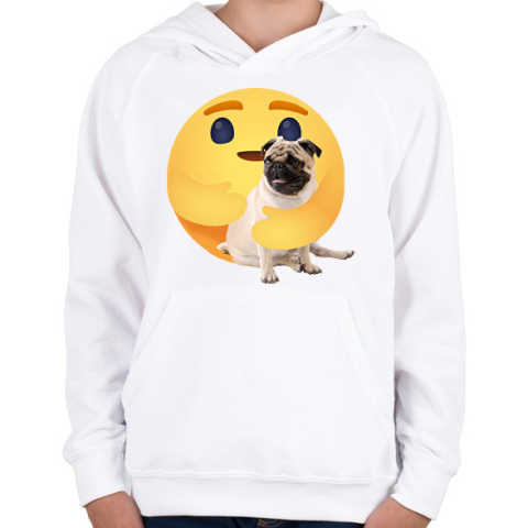 1 kép PRINTFASHION Mopsz - Gyerek kapucnis pulóver - Fehér