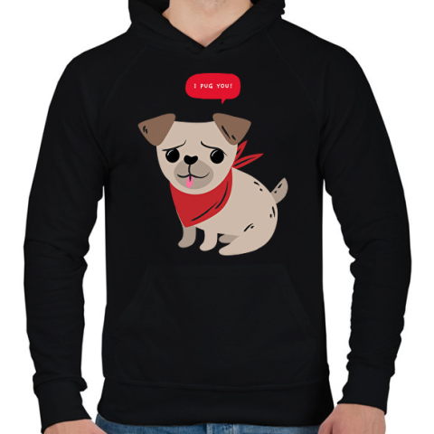 1 kép PRINTFASHION Mopsz - I pug you - Férfi kapucnis pulóver - Fekete