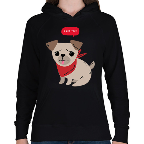 1 kép PRINTFASHION Mopsz - I pug you - Női kapucnis pulóver - Fekete