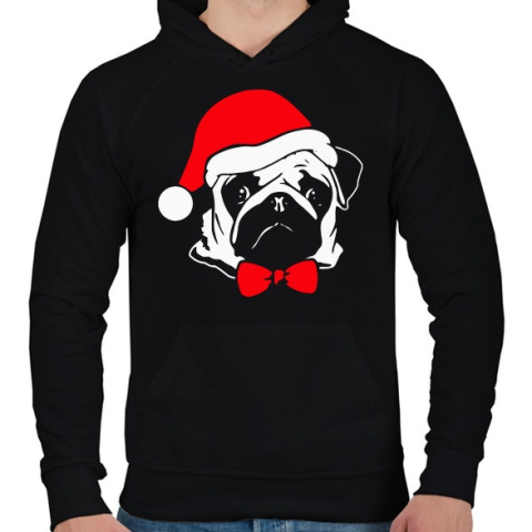1 kép PRINTFASHION Mopsz karácsony - Férfi kapucnis pulóver - Fekete