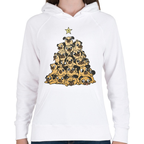 1 kép PRINTFASHION Mopsz karácsonyfa - Női kapucnis pulóver - Fehér