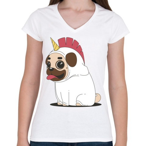1 kép PRINTFASHION Mopsz unikornis - Női V-nyakú póló - Fehér