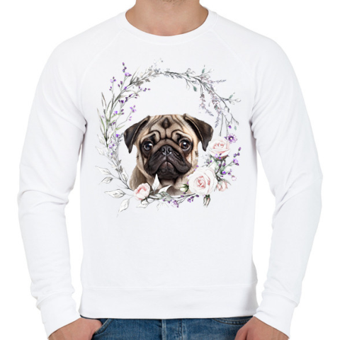 1 kép PRINTFASHION mopsz virágokkal - Férfi pulóver - Fehér