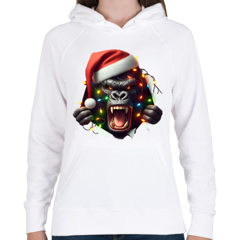 1 kép PRINTFASHION Morcos karácsonyi party gorilla - Női kapucnis pulóver - Fehér