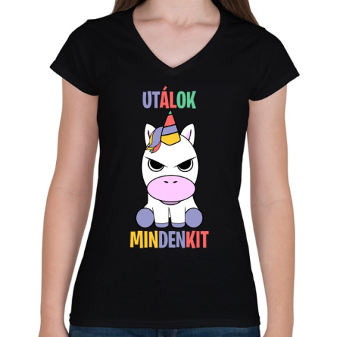 1 kép PRINTFASHION Morcos unikornis - Női V-nyakú póló - Fekete