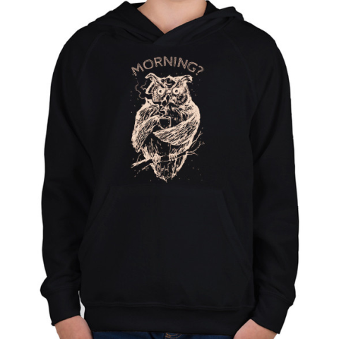 1 kép PRINTFASHION Morning? - Gyerek kapucnis pulóver - Fekete