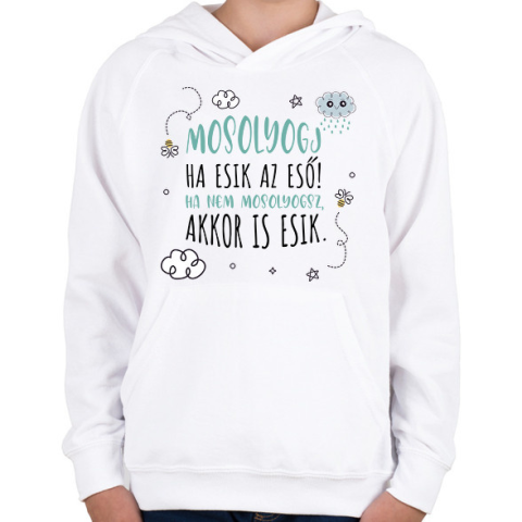 1 kép PRINTFASHION Mosolyogj ha esik az eső - Gyerek kapucnis pulóver - Fehér
