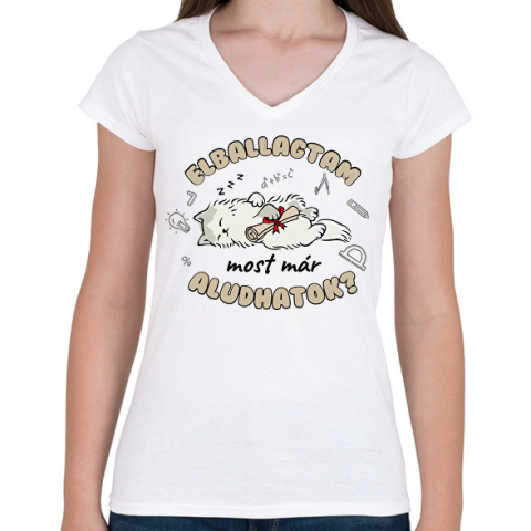 1 kép PRINTFASHION Most már aludhatok? - Női V-nyakú póló - Fehér