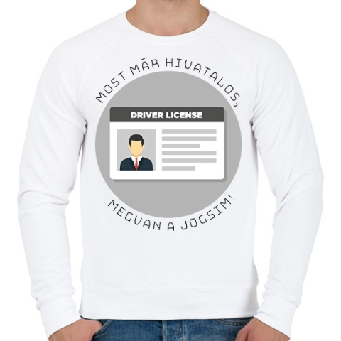 1 kép PRINTFASHION Most már hivatalos, megvan a jogsim! - Férfi pulóver - Fehér