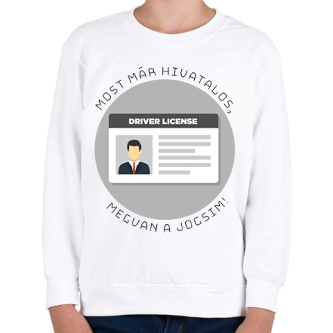 1 kép PRINTFASHION Most már hivatalos, megvan a jogsim! - Gyerek pulóver - Fehér