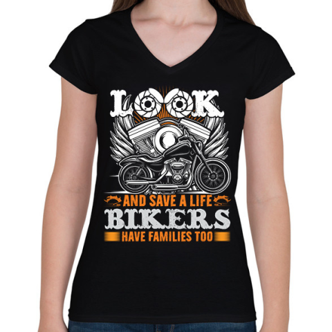 1 kép PRINTFASHION motorcycle - Női V-nyakú póló - Fekete