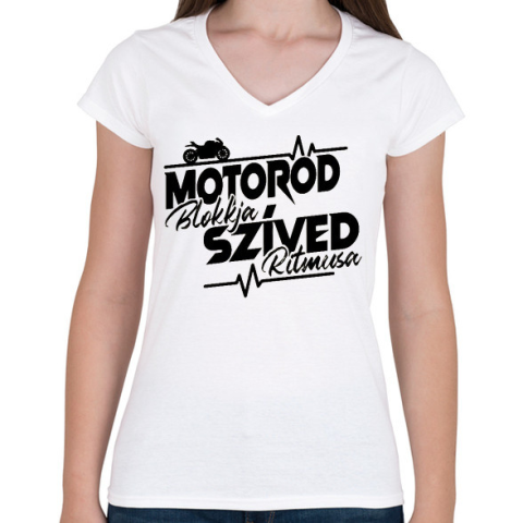 1 kép PRINTFASHION Motorod Blokkja, Szíved ritmusa - Női V-nyakú póló - Fehér
