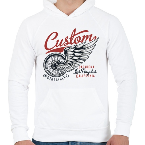 1 kép PRINTFASHION Motoros 06 - Pasadena Motorcycles - Férfi kapucnis pulóver - Fehér