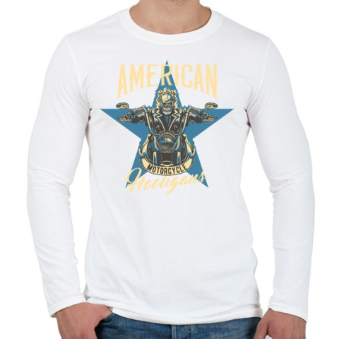 1 kép PRINTFASHION Motoros 07 - American hooligans - Férfi hosszú ujjú póló - Fehér