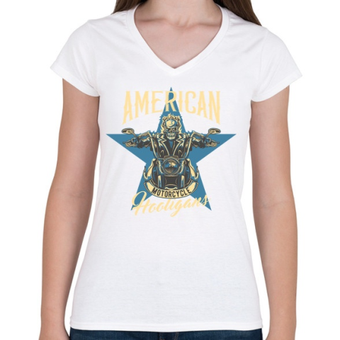 1 kép PRINTFASHION Motoros 07 - American hooligans - Női V-nyakú póló - Fehér