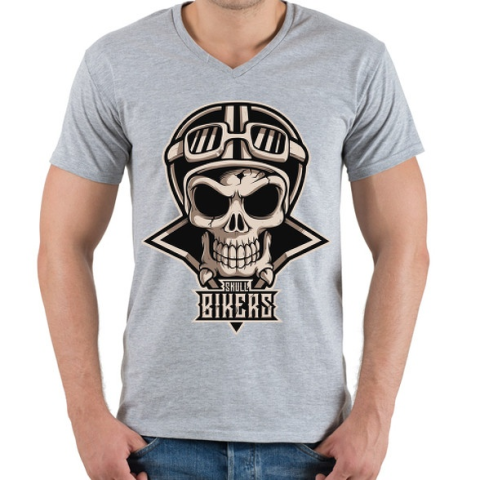 1 kép PRINTFASHION Motoros koponya - Férfi V-nyakú póló - Sport szürke